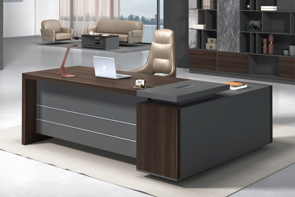 領導所在的辦公場所代表企業的形象,辦公家具的配置和環境的需求是有一定標準的,光從外觀和價值上都與中層管理辦公室有著明顯的區別。老板桌大班臺必須用顏色穩重風格,顏色選用了比較尊貴、典雅的胡桃色,方正筆直的造型,或者黑色商務的風格,展現出一種文化的特殊魅力,寧靜而深邃,從容而淡定,睿智而儒雅的文化品味 ,將現代的生活方式融入東方禪意,延伸于空間,隱約于自然。既是現代平衡美學的極致升華,又保留了東方人積淀的文化歸屬感,擁有大隱隱于市的從容與寧靜。調水平漂浮的線條,營造空與靜的空間特征。采用環保材質與科技材質的有機搭配,盡顯大氣從容的氣勢。